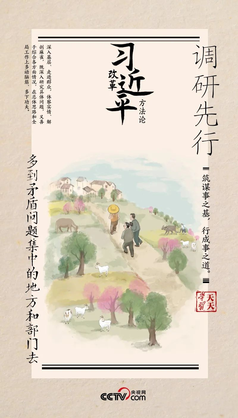 “調(diào)查研究是謀事之基、成事之道。沒(méi)有調(diào)查,就沒(méi)有發(fā)言權(quán),更沒(méi)有決策權(quán)?!?/p> 2013年,習(xí)近平總書(shū)記在武漢召開(kāi)部分省市負(fù)責(zé)人座談會(huì)時(shí)指出,研究、思考、確定全面深化改革的思路和重大舉措,刻舟求劍不行,閉門(mén)造車(chē)不行,異想天開(kāi)更不行,必須進(jìn)行全面深入的調(diào)查研究。 《干在實(shí)處 走在前列》一書(shū)記錄了習(xí)近平對(duì)調(diào)查研究的深刻思考:“人的正確思想不是從天上掉下來(lái)的,不是頭腦里固有的,而是從實(shí)踐中來(lái)的?!?/p> 這實(shí)踐,指的就是調(diào)查研究。 1983年夏收后的一天,時(shí)任河北正定縣委書(shū)記的習(xí)近平拉上縣政府辦公室的工作人員說(shuō):“走,我們?nèi)フ胰肆牧摹!?/p> 兩個(gè)人騎著自行車(chē)來(lái)到縣城附近的三角村村外,十來(lái)個(gè)村民正在田間鋤草、間苗??吹降仡^還放著幾把農(nóng)具,習(xí)近平擼起袖子,拿起鋤頭跟著大家熟練地干起來(lái)。 趁著歇晌的時(shí)候,習(xí)近平跟大家你一言我一語(yǔ)地嘮家常、聊生產(chǎn)。談到正定縣未來(lái)發(fā)展,村民暢所欲言:“三角村離縣城很近,種點(diǎn)兒經(jīng)濟(jì)作物供給縣城,不是更好嗎?” 習(xí)近平仔細(xì)聽(tīng)完村民意見(jiàn)后說(shuō):“回去就認(rèn)真研究?!?/p>